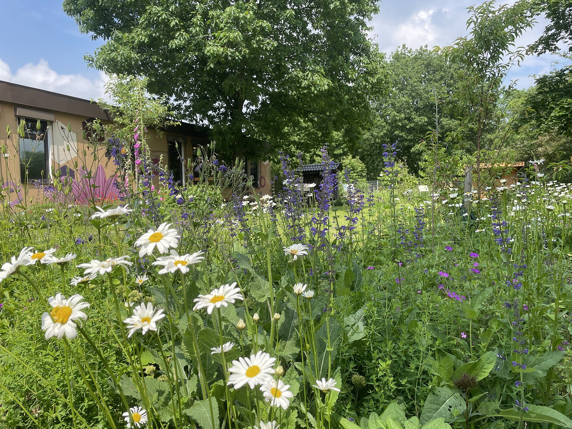 Der Bienenlehrgarten steht selbstverständlich im Zentrum des Tages. Er zeigt vorbildlich wie eine blütenreiche Artenvielfalt unseren Insekten nutzt. ImkerInnen des Garten-Arbeitkreises haben den Garten, fachlich begleitet von der Staudengärtnerin Gerhild Diamant, entwickelt und stellen ihn kompetent vor