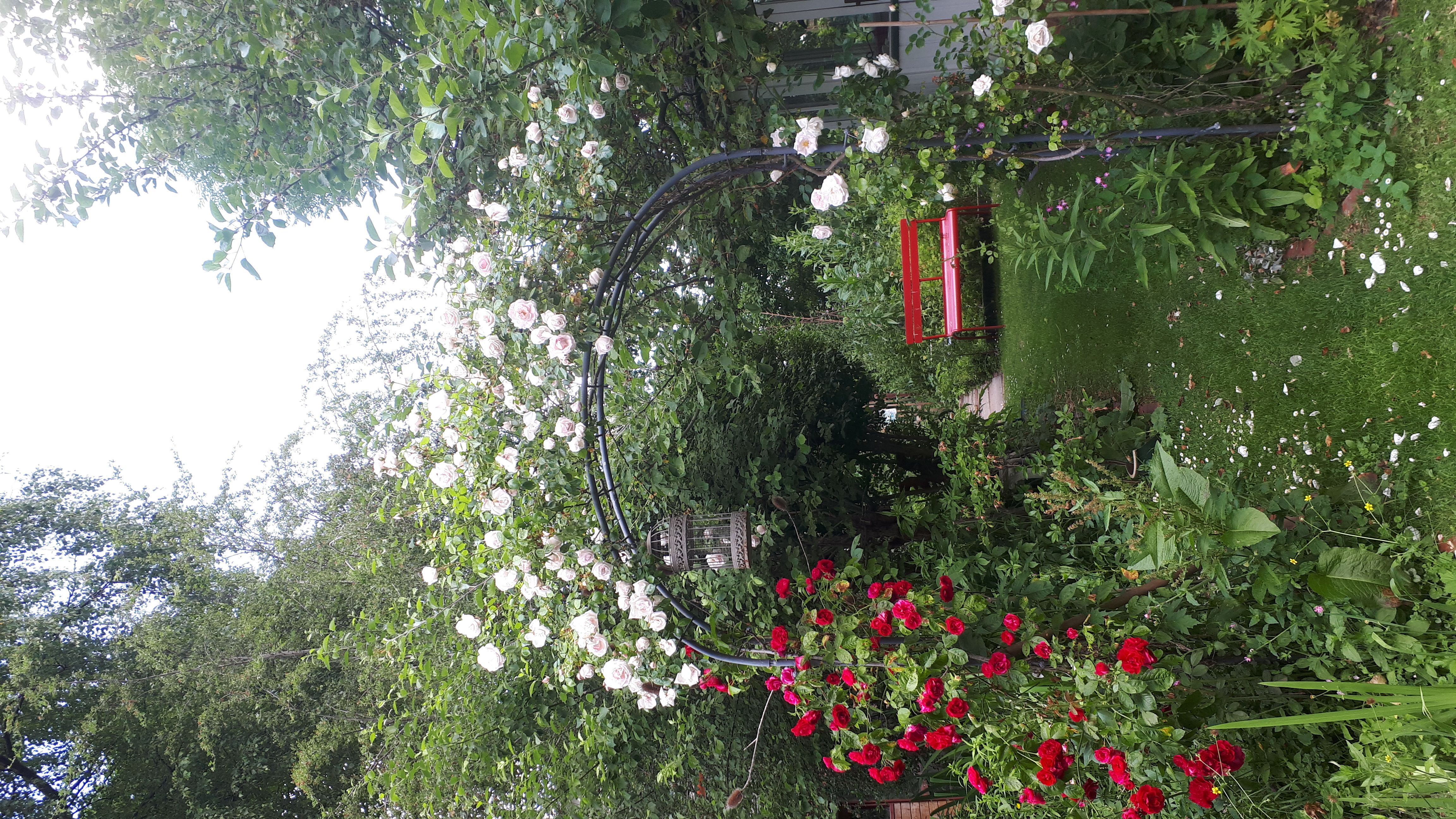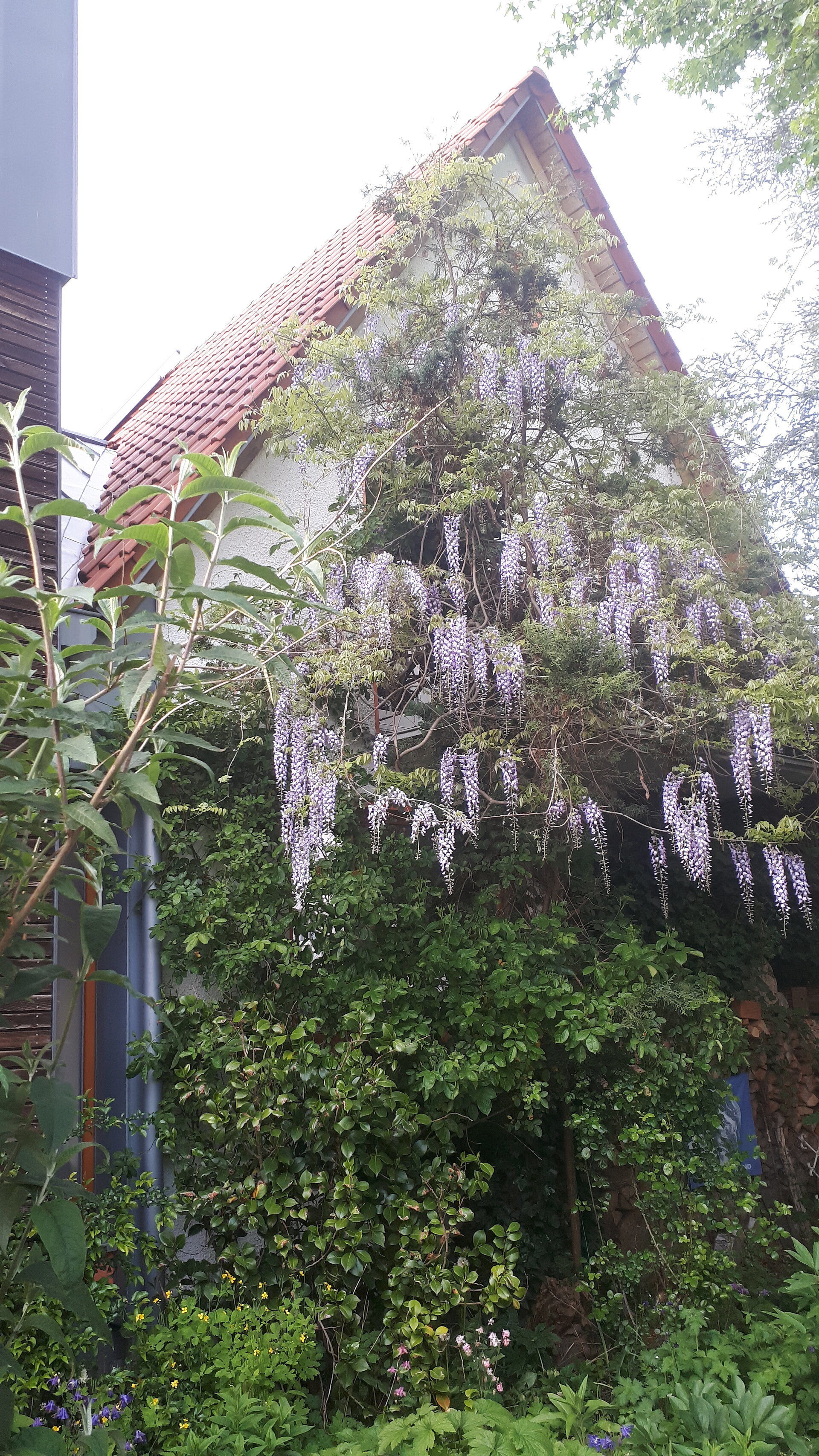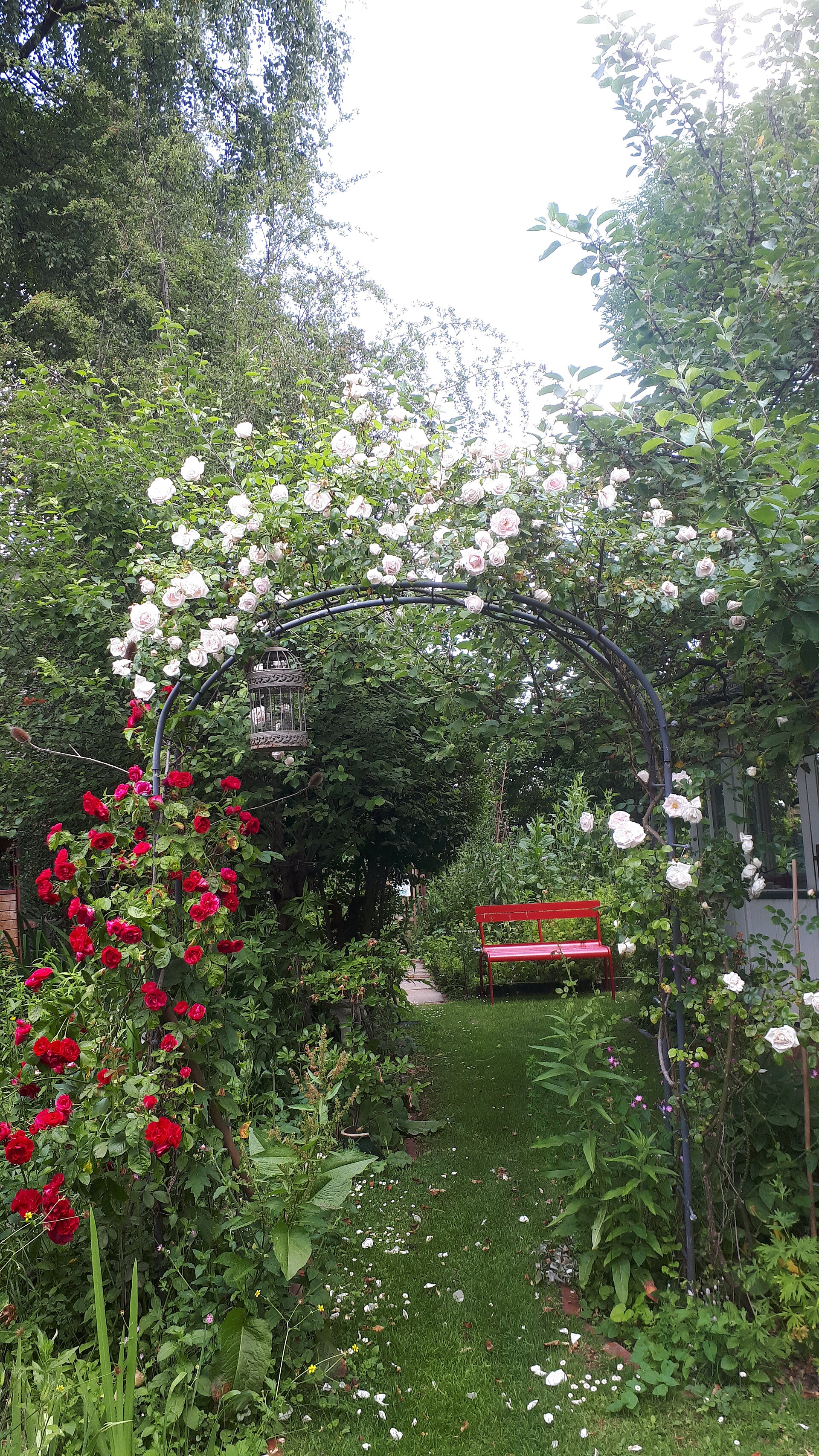 Kleinod mit großer Vielfalt an Pflanzen und Lebensräumen. Neben Wildblumen und sich selbst versamenden Blumen finden sich Gemüse und Blumenbeete, durch die Hühner und eine Landschildkröte wandern. Ein schwedisches Gartenhaus lockt zum Lesen in aller Ruhe ein. Zuwanderer im Pflanzenreich wie die Zaunrübe, die Kermesbeere und sogar der mediterrane Blasenstrauch finden hier ein zu Hause und liebevolle Pflege. Auch die Pflasterung der Wege folgt hier dem Wachstum der Pflanzen und ihrer Wurzeln. Romantische Stilllebenelemente laden ebenfalls zum Verweilen ein.
