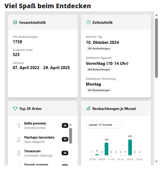 Ziel des Projektes ist, die Pflanzenvielfalt im Zechenpark, der auf dem ehemaligen Zechengelände des Bergwerk West entstanden ist, zu erforschen. So können wir Änderungen der Artenzusammensetzung im Lauf der Zeit erfassen. Parkbesucher können dabei die Pflanzenarten im Zechenpark näher kennen lernen und beobachten wie lange es dauert, bis sich Arten ansiedeln, die nicht gepflanzt oder gesät wurden und für solche Standorte typisch sind. Seit Ende Juni zeigt nun unser brandneues Dashboard die Beobachtungen des Projektes Zechenparks wilde Flora, siehe Link: https://www.foerderverein-laga2020.de/projektgruppen/zechenparks-wilde-flora/.In Zusammenarbeit mit Daniela Lud von der Hochschule Rhein-Waal (daniela.lud@hochschule-rhein-waal.de) und der Digital-Agentur art&design aus Kamp-Lintfort haben wir eine tolle Möglichkeit geschaffen:Fleißige Beobachter:innen können mit der mobilen App Flora Incognita bereits seit geraumer Zeit eigene Pflanzenfunde im Zechenpark dokumentieren, fotografieren und mit dem Projekt teilen. Die App scannt das Foto der Pflanze und ermittelt daraus die Art, den Fundort und viele weitere wertvolle Daten. Um die Daten zu teilen, muss die App auf dem Handy installiert werden, die Zusatzfunktion Zechenparks wilde Flora aktiviert werden und jede einzelne Bestimmung, die mit dem Projekt geteilt werden soll, über die aktivierte Zusatzfunktion mit dem „Tag“/Schildchen „Zechenpark“ versehen werden ( Link zur Anleitung: https://www.foerderverein-laga2020.de/projektgruppen/unsere-projekte/einsaat-aktion-2022-im-zechenpark/zechenparks-wilde-flora/ ).Nach erfolgreichem Teilen mit dem „Tag“/Schildchen „Zechenpark“ stellt die App (entwickelt von der TU Ilmenau) diese Daten zur Verfügung. Das gemeinsam mit art&design gebaute Dashboard präsentiert die geteilten Beobachtungen jetzt allen Interessierten und lädt zum Entdecken ein.