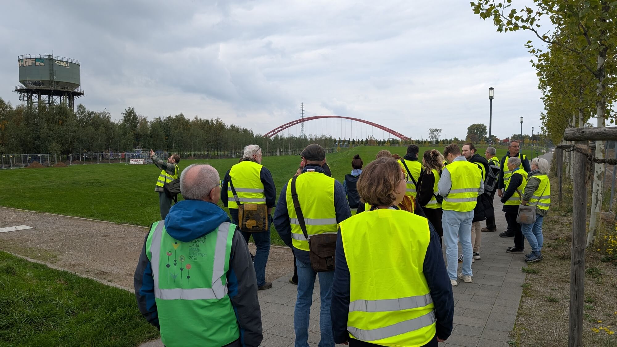 Nach einem gemeinsamen Gruppenfoto verteilten sich die Teilnehmenden auf drei Workshops, die unterschiedliche Schwerpunkte rund um die IGA 2027 setzten. Im Fokus standen dabei die Projektplattform „MEIN GARTEN“, Fragen der Beteiligung und Kreislaufwirtschaft auf dem Duisburger IGA-Gelände sowie die Verbindung von Fairem Handel und den SDGs. Den Abschluss bildeten ein gemeinsamer Imbiss und ein einstündiger Rundgang über das Gelände des Duisburger Zukunftsgartens, bei dem Bauvorhaben, Projektstand und Hintergrundinformationen vorgestellt sowie Fragen der Teilnehmenden beantwortet wurden.