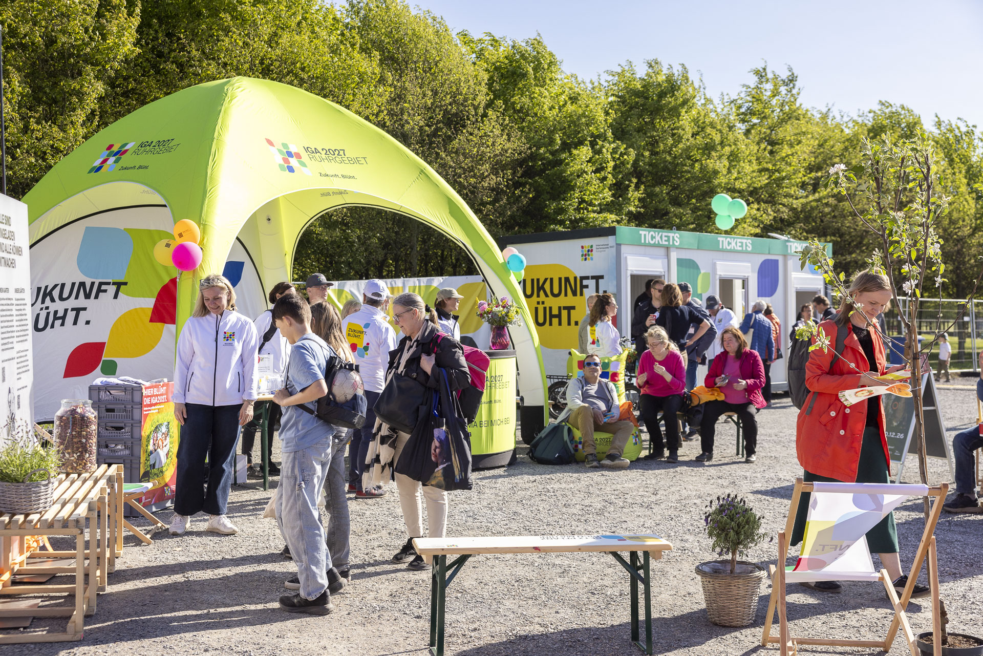 Mit einem großen Baustellenfest samt Führungen im Duisburger Zukunftsgarten RheinPark sowie weiteren Baustellenführungen in Gelsenkirchen, Dortmund, Lünen und im Emscherland ist heute offiziell der Countdown zur Eröffnung am 23. April 2027 gestartet. Gleichzeitig fiel heute auch der Startschuss für den Verkauf der rabattierten Dauerkarten für die IGA 2027. Die vergünstigten Tickets sind ab sofort online (iga2027.ruhr) und an mehreren stationären Verkaufsstellen erhältlich. Die Internationale Gartenausstellung Ruhrgebiet findet vom 23. April bis 17. Oktober 2027 erstmals nicht in einer einzelnen Stadt, sondern in einer ganzen Region statt. Im Mittelpunkt stehen die fünf Zukunftsgärten in Duisburg, Gelsenkirchen, Dortmund, Lünen und im Emscherland.